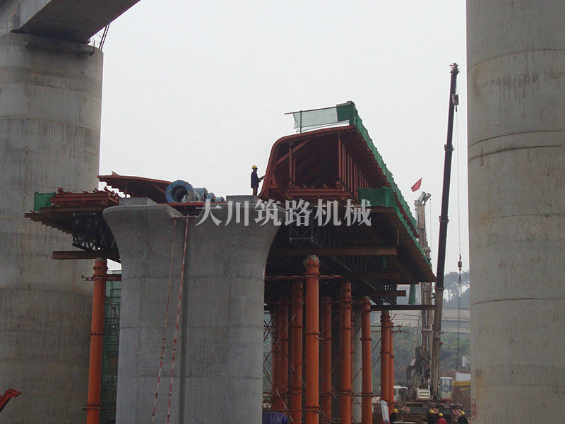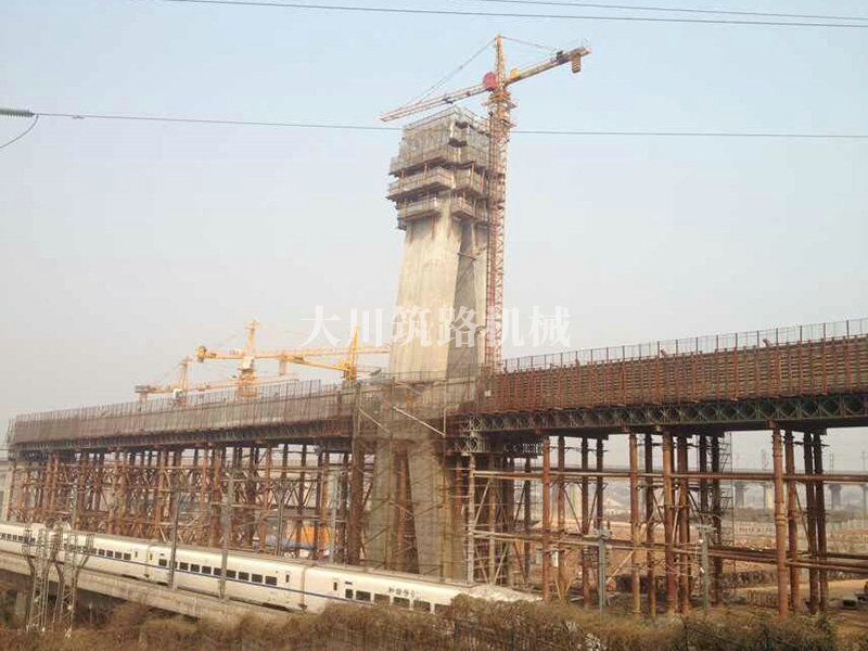 特點(diǎn):因滬昆高鐵跨過武廣高鐵,為了減少對(duì)武方高鐵的正常運(yùn)行,主梁和武方高鐵平行澆筑,然后懸轉(zhuǎn)跨越武廣高鐵,在當(dāng)時(shí)引起全國(guó)同行關(guān)注。使用的貝雷片數(shù)量達(dá)到2000片以上,于2011年12月投入使用。